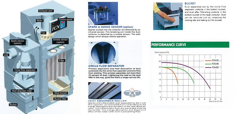 - Machine has function to absorb heat to sparks and to prevent ignition