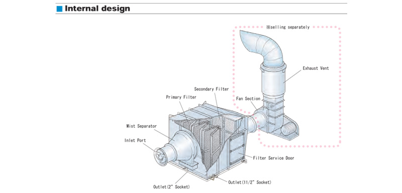 Large air capacity Mist Collector with a unique swirl flow equation method, ideal for collecting large concentration of more than one machine tool.